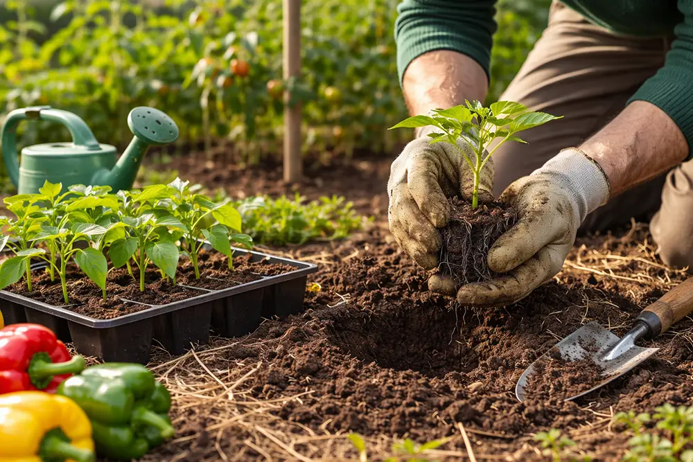 Il trapianto dei peperoni si fa quando le temperature notturne superano stabilmente i 12–14°C, in genere tra aprile e maggio, a seconda della zona climatica.
